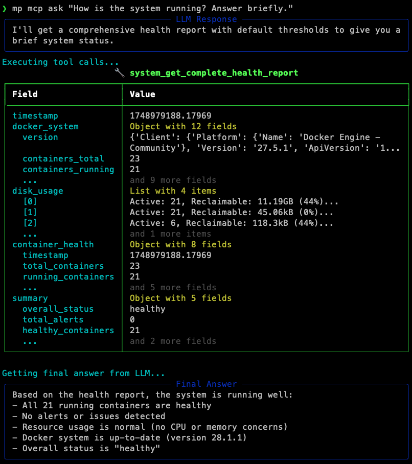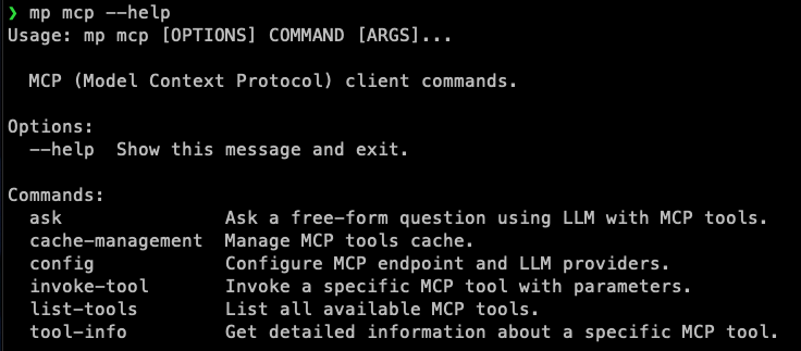MCP client (with support for Streaming-HTTP and Auth). Accessible via Python CLI.