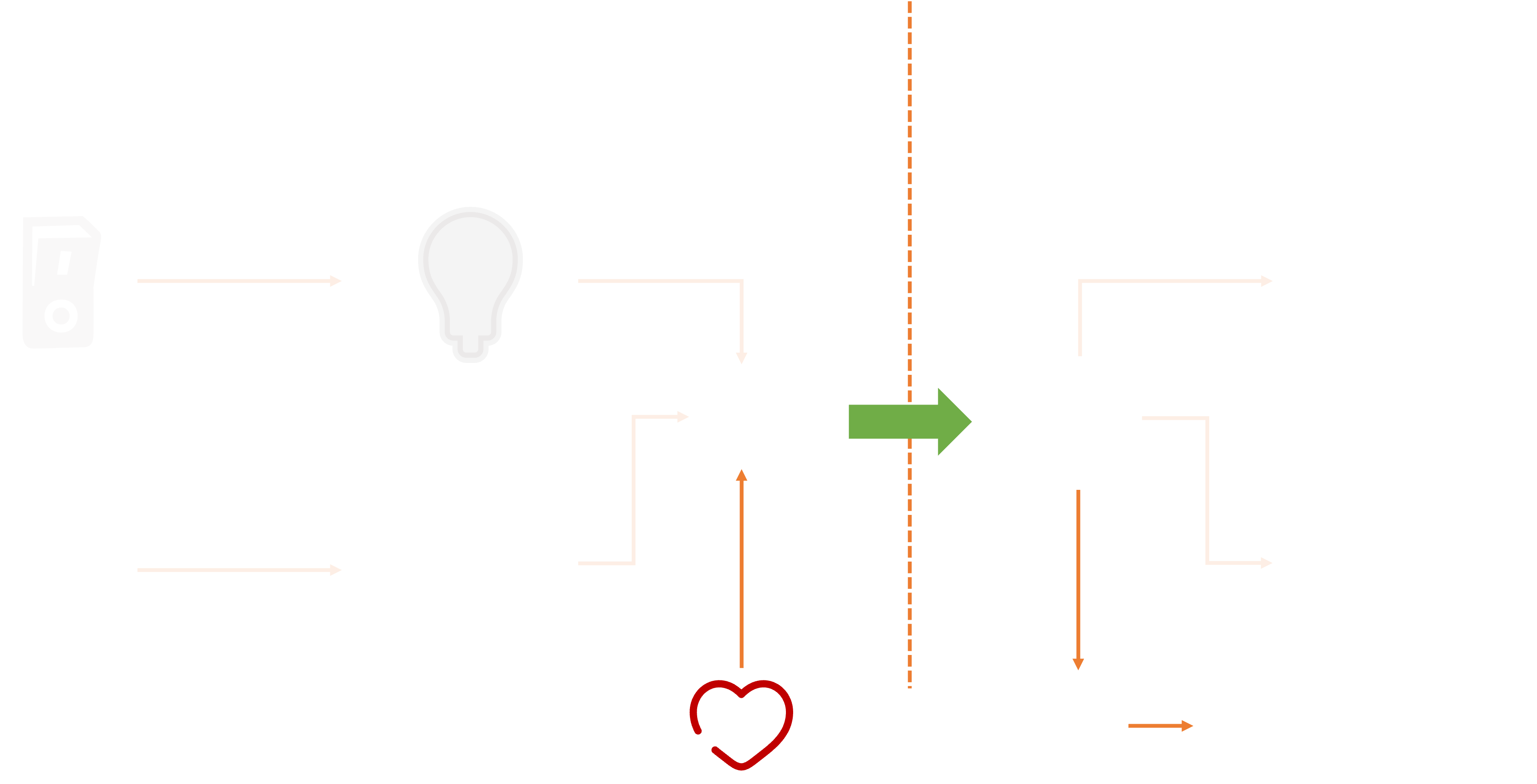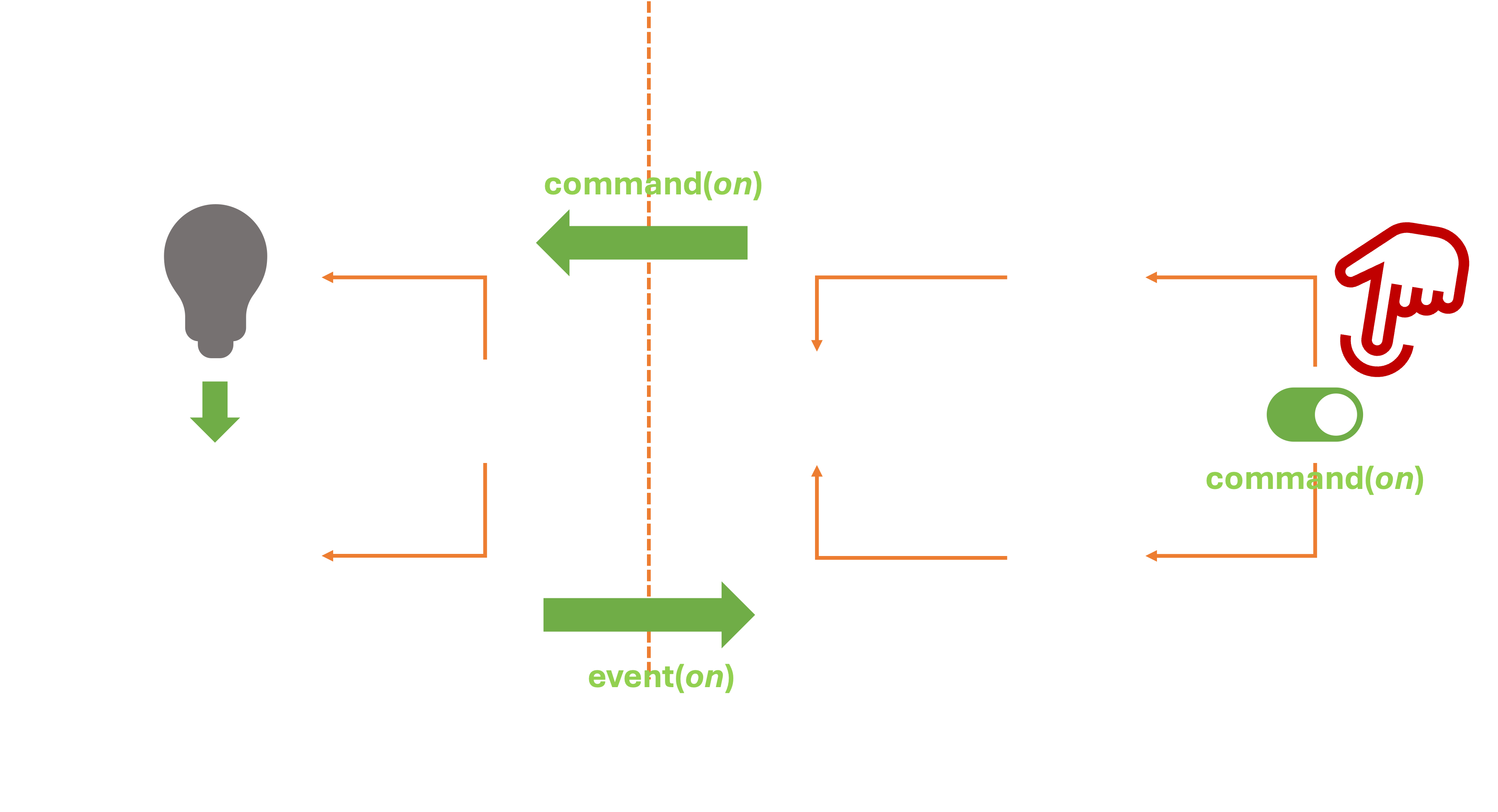 When we change the virtual state of the light (on the dashboard), the actual light bulb may change state, but the light switch itself doesn’t actually move.