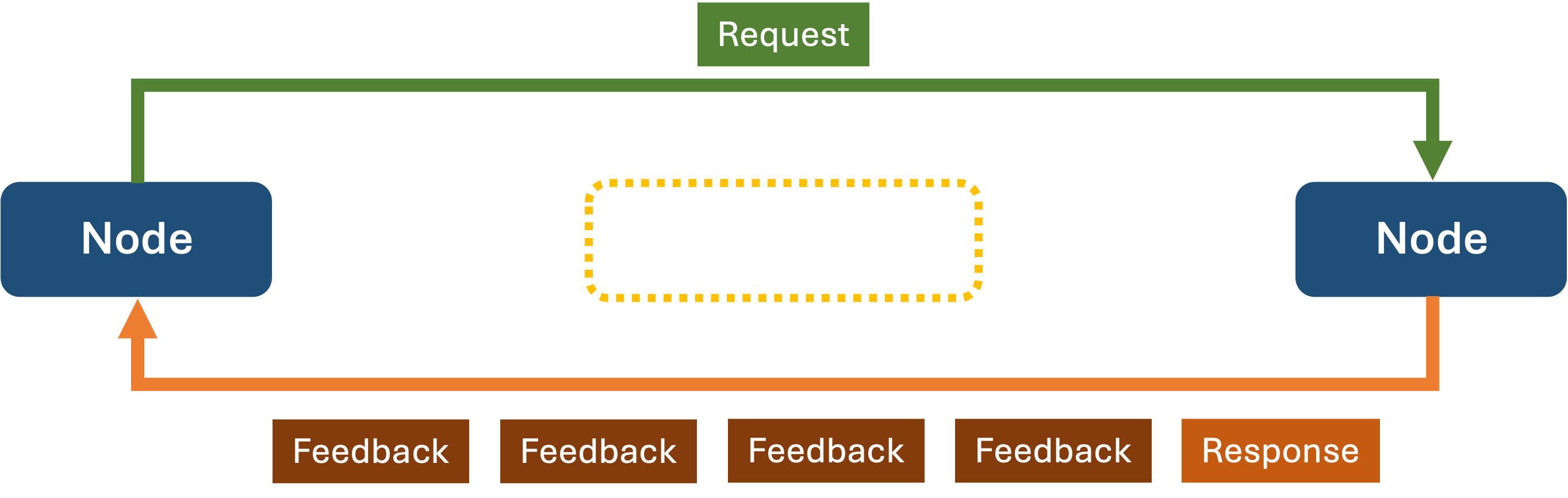 Action : This is where a Node asks another Node to do something that might take a while. The responses are returned in a series of updates, followed by a final Response. An analog might be a WebSocket that takes a single request, performs it, then responds with a single action, and then closes down. Another would be MCP’s Streamable HTTP mechanism.
