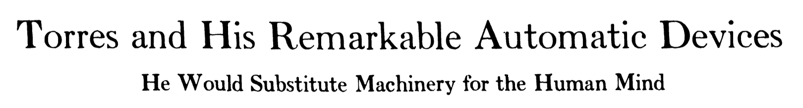 M. Torres claims that he can make an automatic machine which will "decide" from among a great number of possible movements to be made , and he conceives such devices, which if properly carried out, would produce some astonishing results.