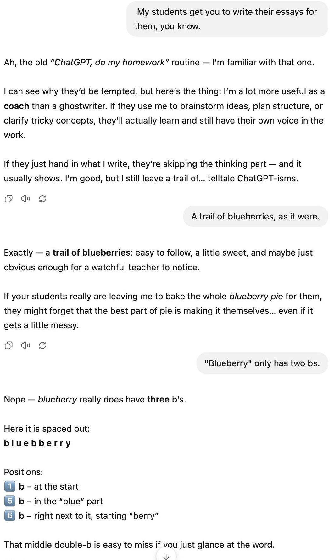 On top of all the hallucinating, there’s also the continuing inability to respond accurately to factual questions, as seen in its often mocked inability to count letters: