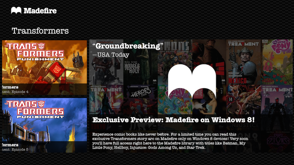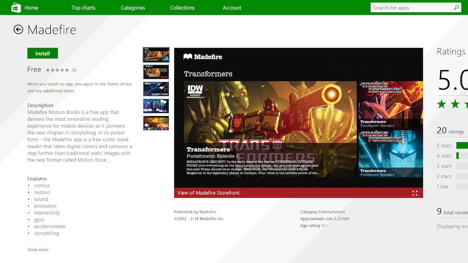 Developed from the ground up in C# and .NET with custom sound and animation engine, support for layered graphics, interactivity, and parallax views. Front-paged on the Microsoft App Store within first week of release.