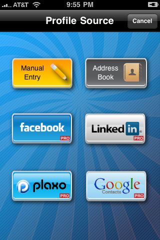 In addition to standard contact info, cards could be tied to social networking profiles from Google, LinkedIn, Facebook, or Twitter.