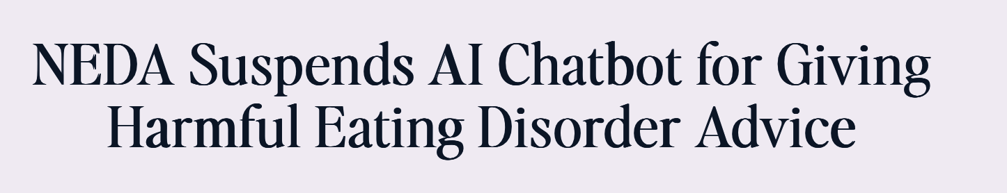 In 2023, The National Eating Disorders Association (NEDA) was forced to remove its chatbot for offering potentially harmful advice: