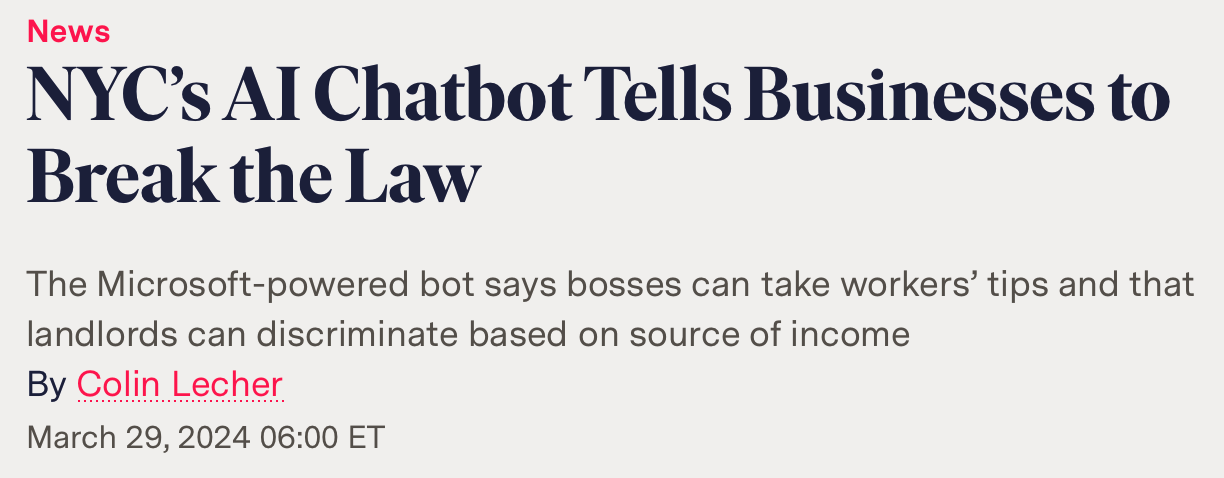The problem, however, is that the city’s chatbot is telling businesses to break the law.