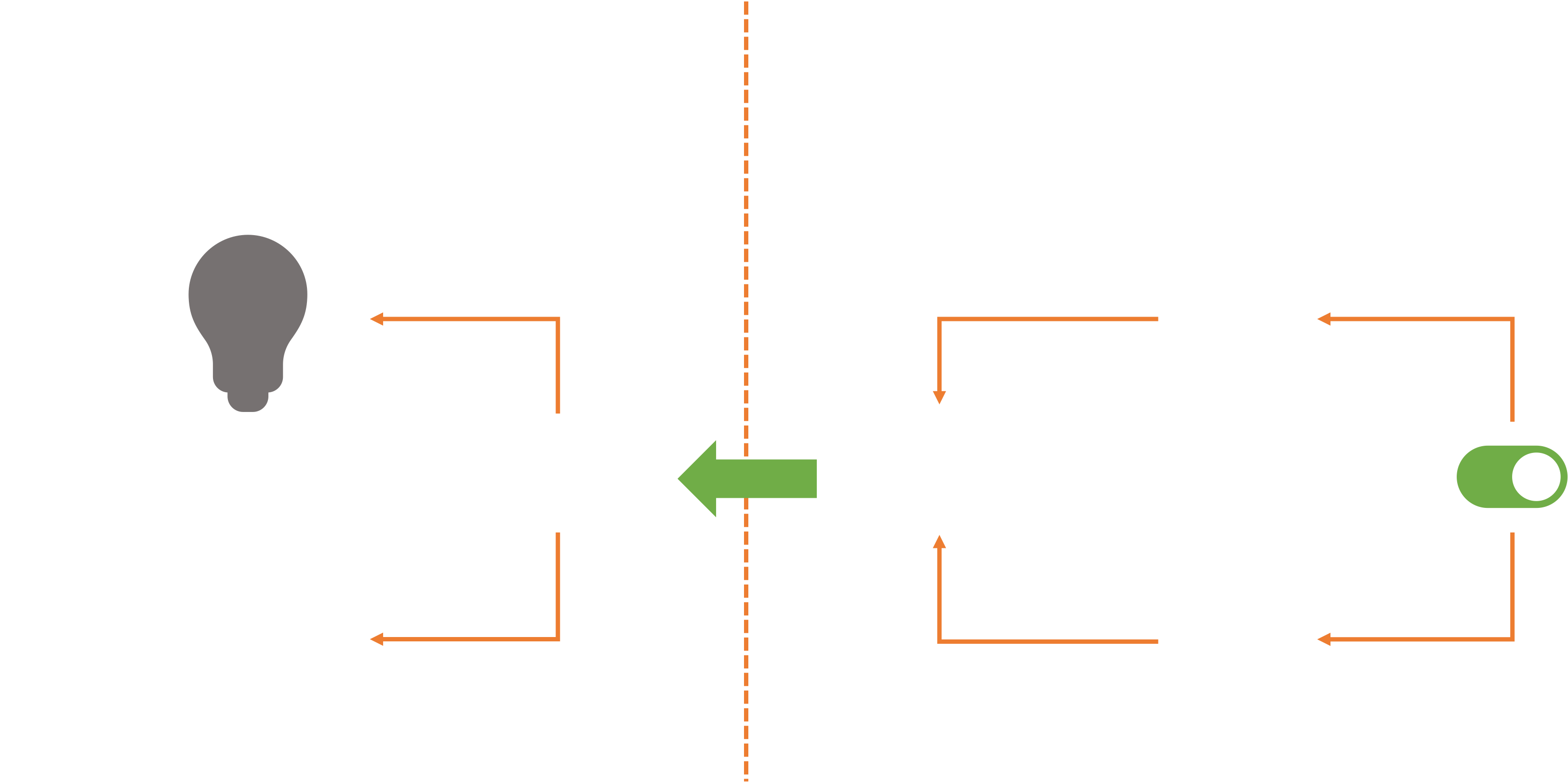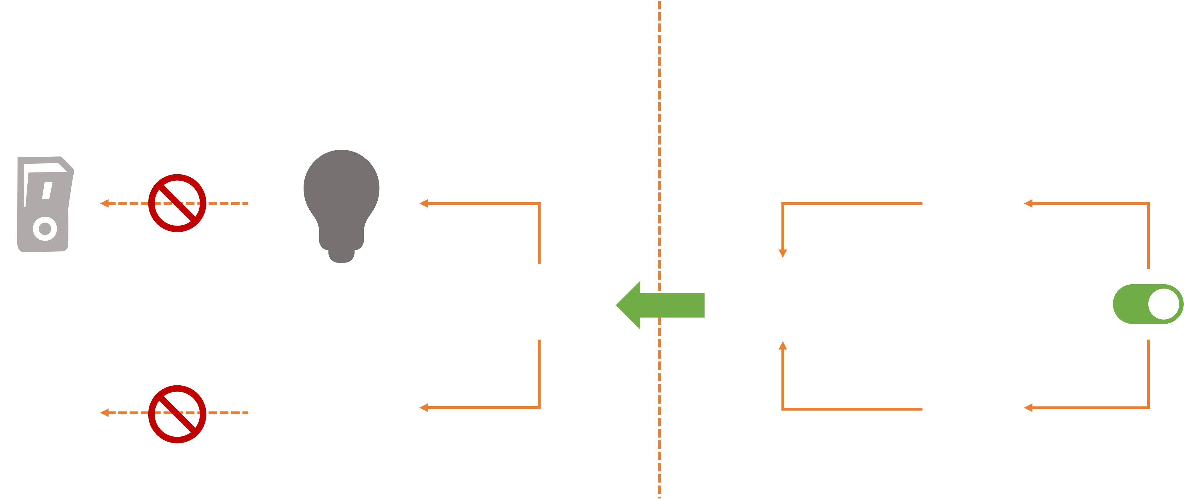 When we change the virtual state of the light (on the dashboard), the actual light bulb may change state, but the light switch itself doesn’t actually move.