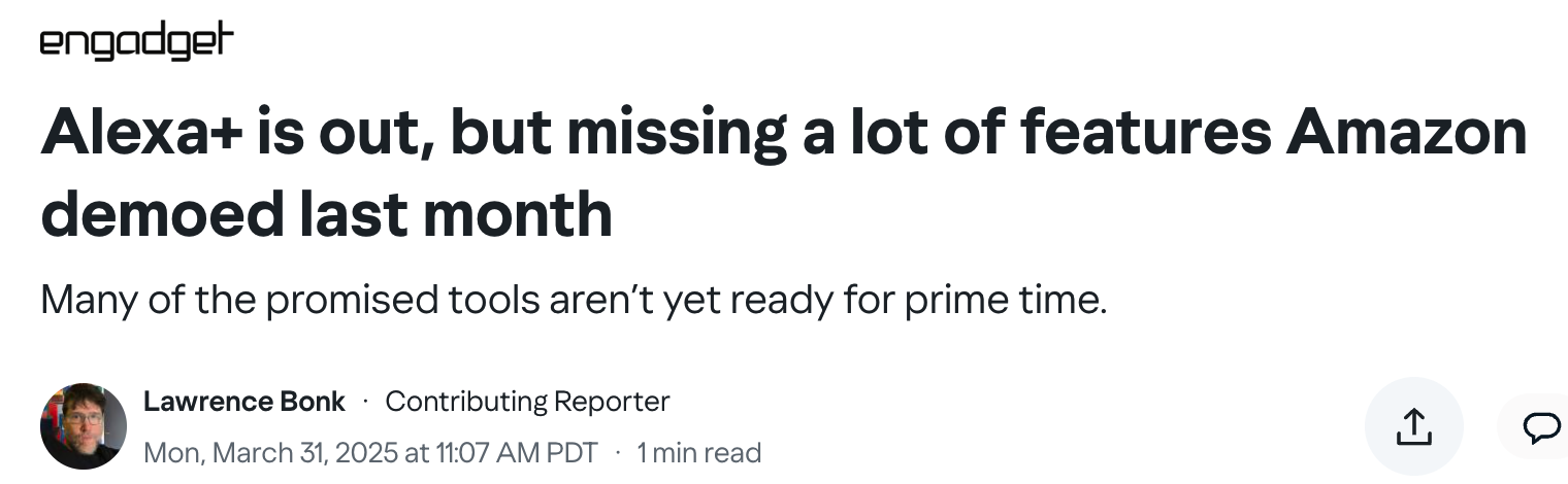 Amazon’s Alexa+ is the first major device assistant with built-in LLM support. We’ll cover these later.