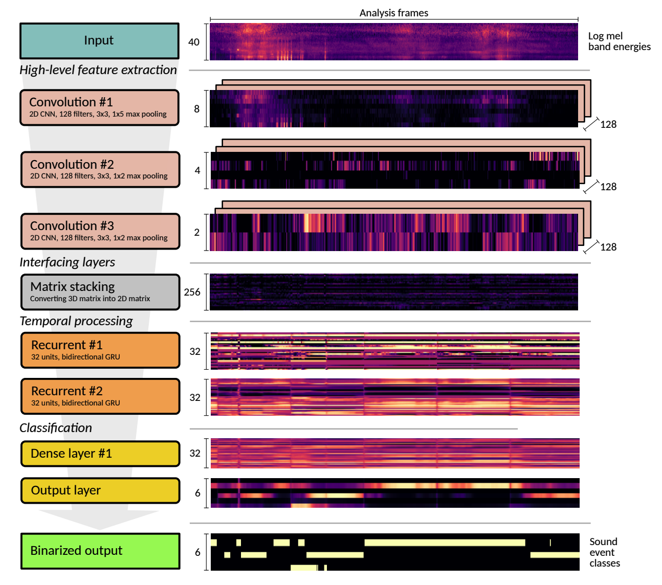 As mentioned above, various on-device audio processing algorithms clean up the sound to help the detection algorithms work better. A reasonable amount of this digital data is then buffered and continuously streamed down to the cloud.