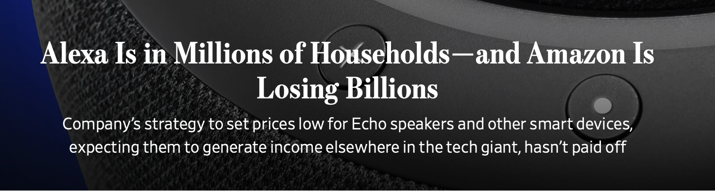 Amazon was reported to have sold Echo devices at a loss, hoping to recoup the expenses indirectly: