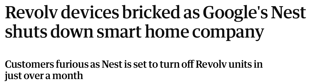 Large companies may be willing to absorb ongoing losses to, hoping to make up for it downstream, or by acquiring customer data for training their models. Smaller companies, however, do not have this option, and if their expenses can not be covered by revenues, they will simply go out of business, taking the service back-end with them. This is what in the hardware business is called bricking, and it’s not cool.