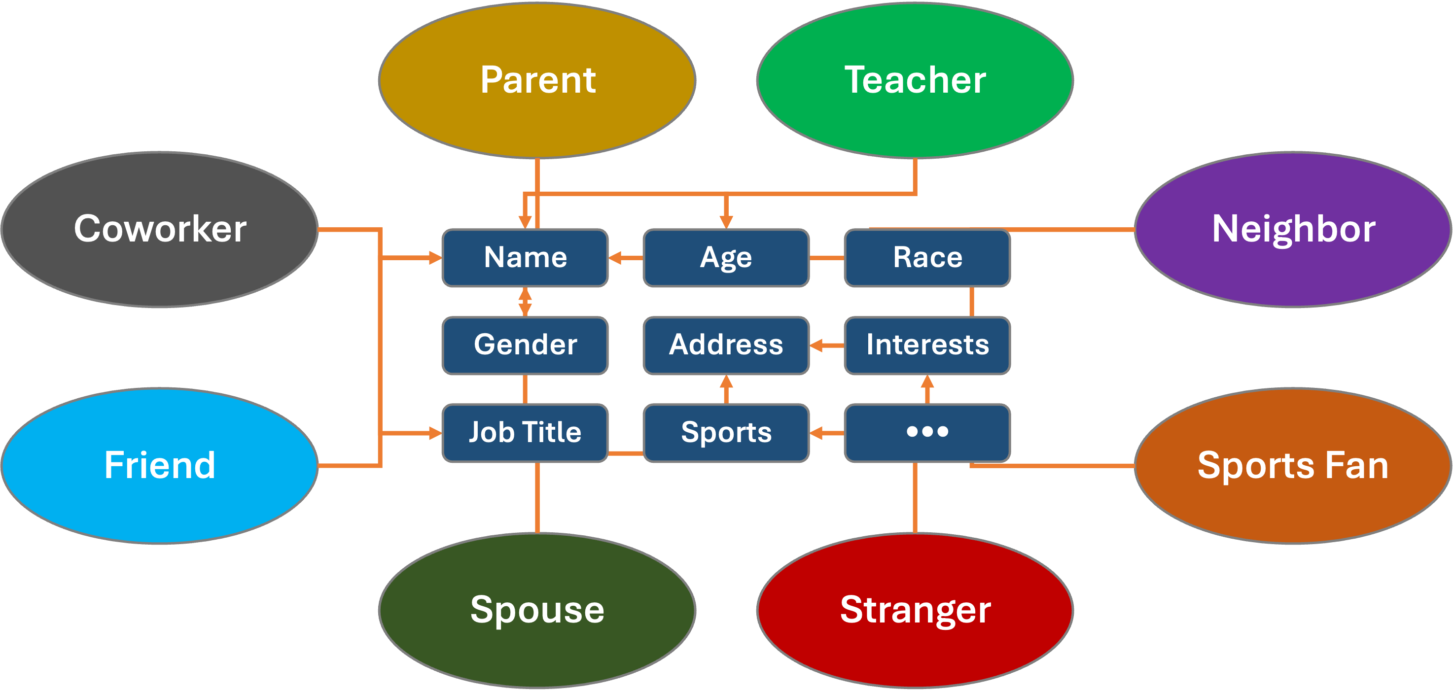 - Trusted: that which is shared with entities we trust, like service providers, friends and family, caregivers, etc.