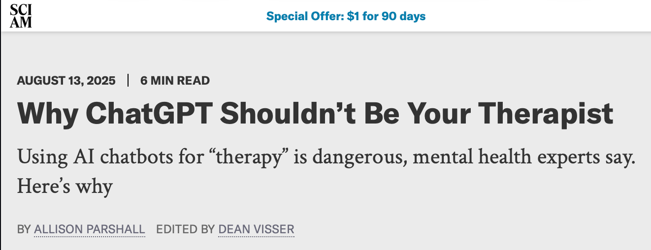 But consider that an AI Companion, to be able to perform its tasks, will need access to a significant amount of private information and may even be allowed to perform tasks on your behalf as part of its automation or agentic services. It would be wise to consider this when thinking about how we want them to behave.