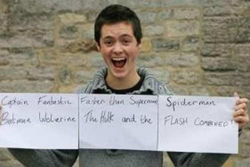 A Glastonbury teenager is claiming to have the longest name in the world - Captain Fantastic Faster Than Superman Spiderman Batman Wolverine Hulk And The Flash Combined.