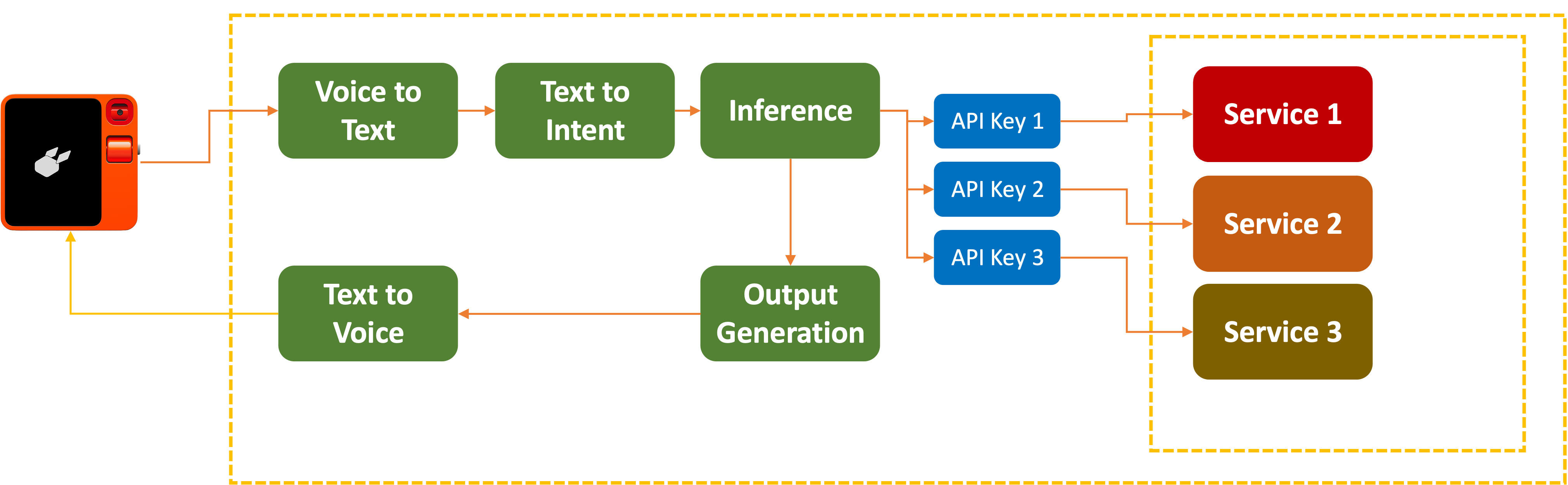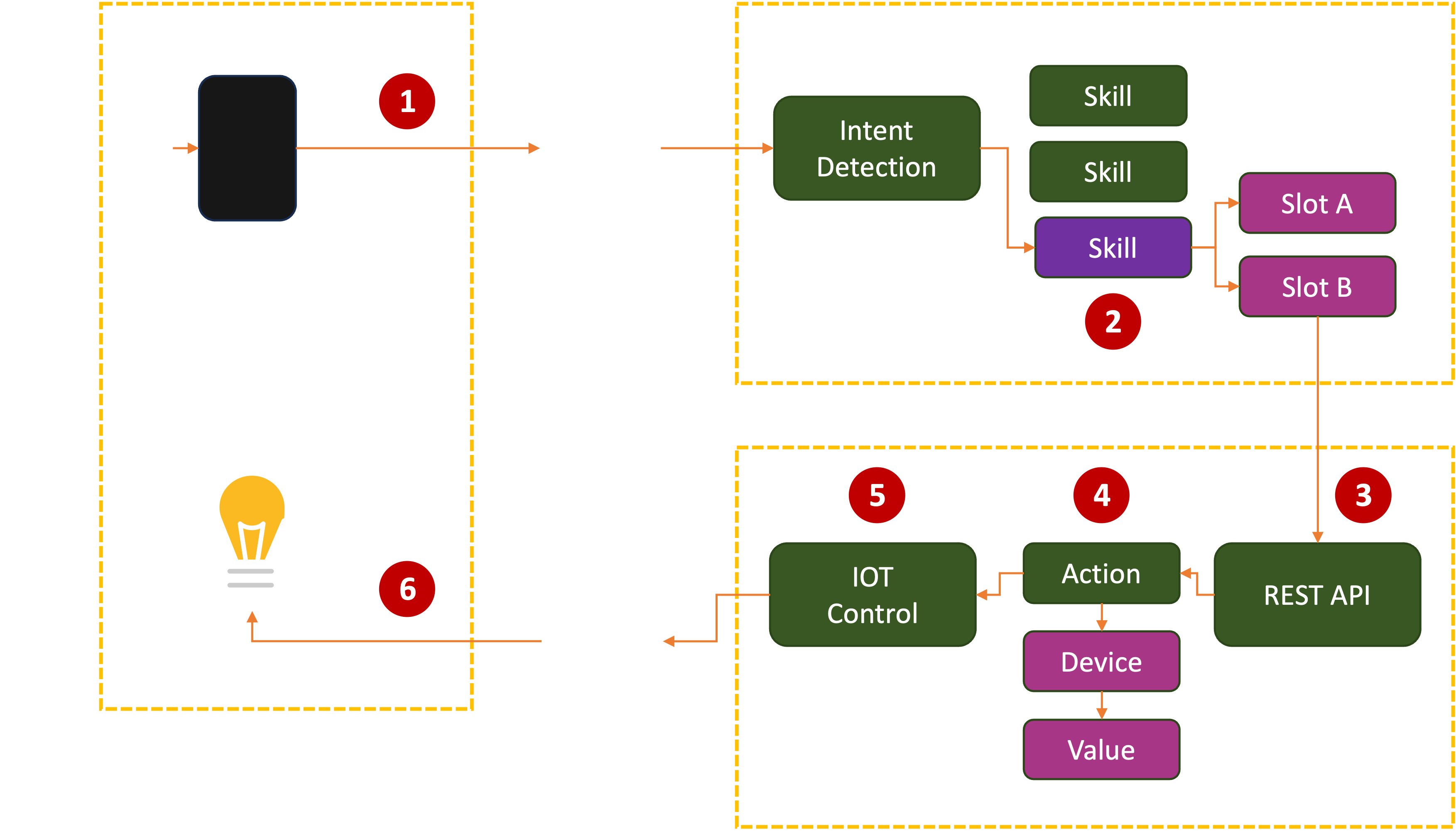 The system would then invoke the code for the skill and pass it the named parameters. The result would be returned as text, then converted to the voice of the user’s chosen speaker.