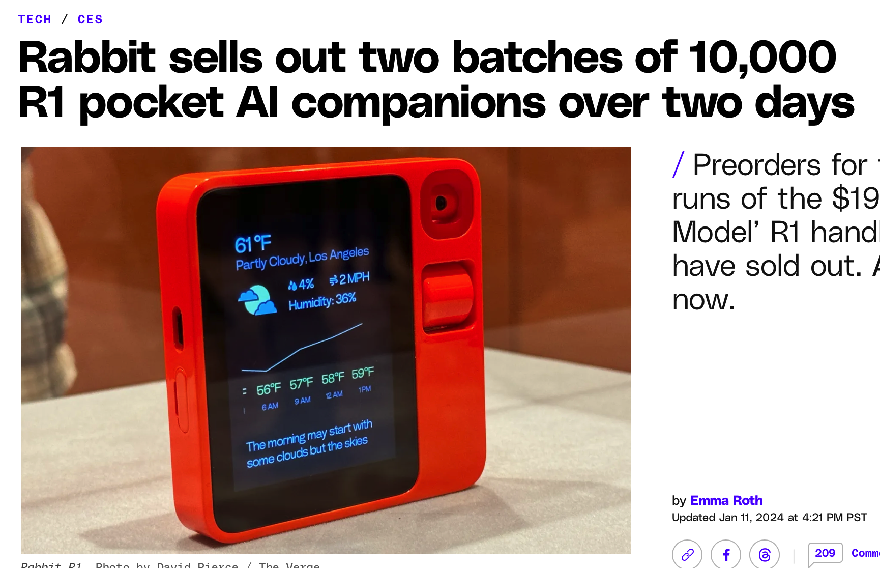 In January 2024, at the annual Consumer Electronics Show (CES), where most consumer electronics companies congregate every year, Jesse Lyu, the founder of AI Startup Rabbit, presented a standalone device that could let you interact with an AI service on the cloud without having to use your phone.