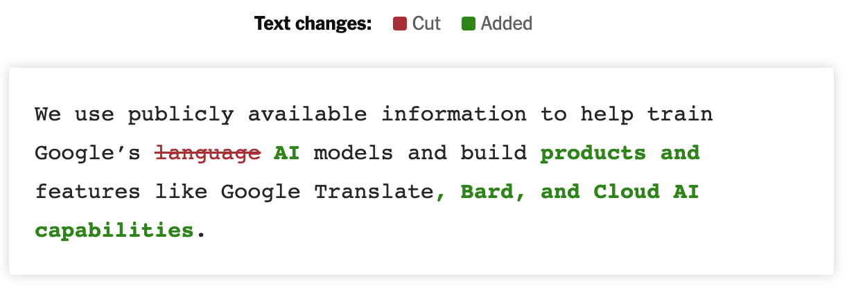 This is just Google. The article covers other changes in terms and conditions from Adobe, Snap, and X. Many others did not have to make a change. Access was already granted when users signed up and accpeted the fine-print.